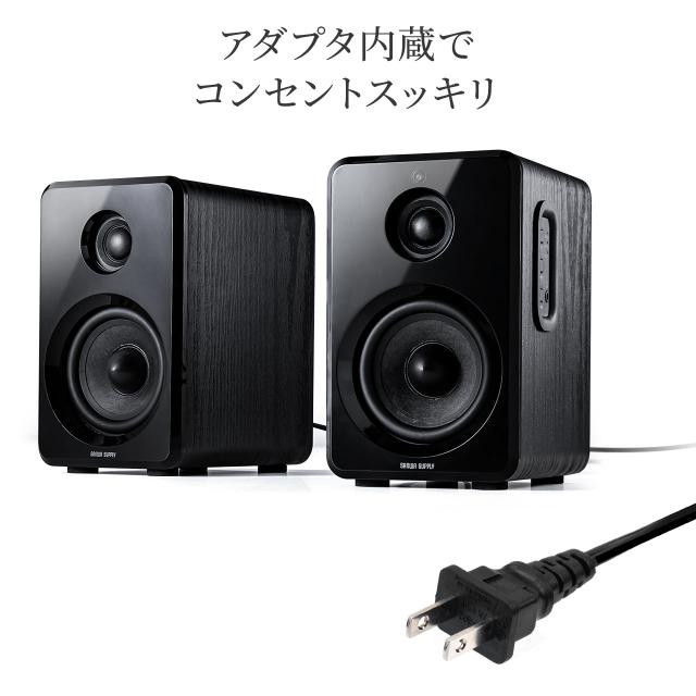 ●パソコンやテレビ周りを煩雑にしないよう電源ユニットをスピーカーに内蔵し、大きなACアダプタを必要としませんので、電源タップ回りも綺麗に配線できます。