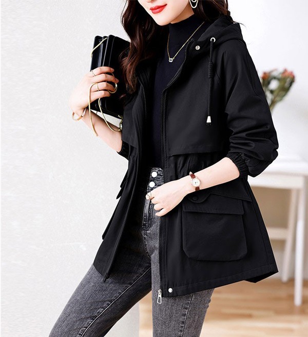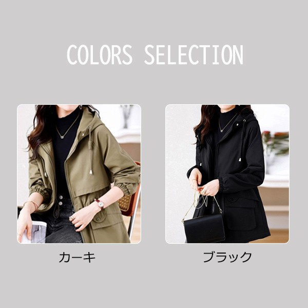 レディース コート 春アウター スプリングコート トレンチコート ミディアム丈 ジャケット レディース ウォッシュコットン フード付き