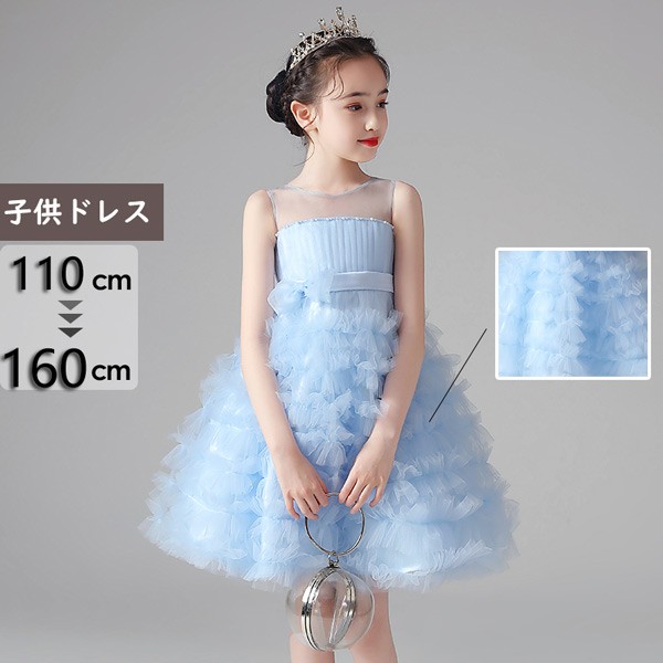 【レビュー投稿で+5%還元】子供ドレス ピアノ発表会 キッズ ドレス ワンピース リボン付き キッズドレス 子供 ピアノ発表会 女の子 上品 フォーマルドレス ジュニア パーティードレス 七五三 結婚式 ピアノ 発表会 衣装 水色 ブルー110 120 130 140 150 160