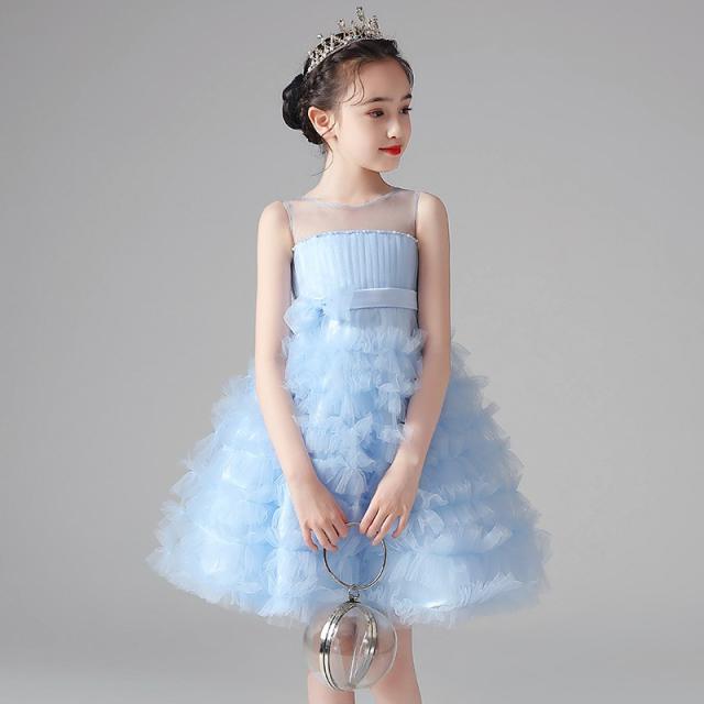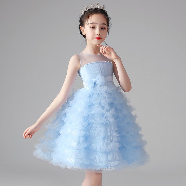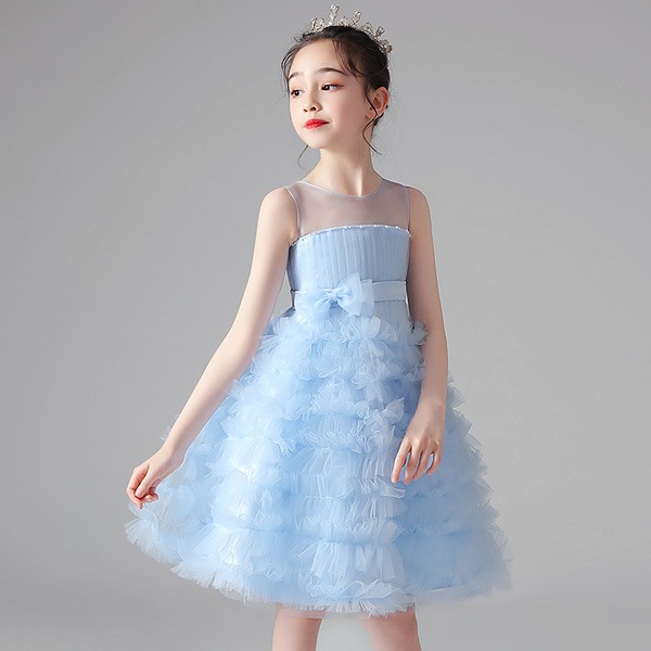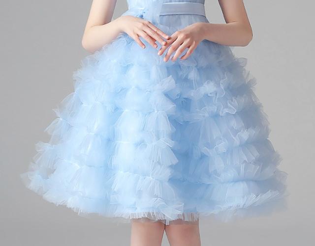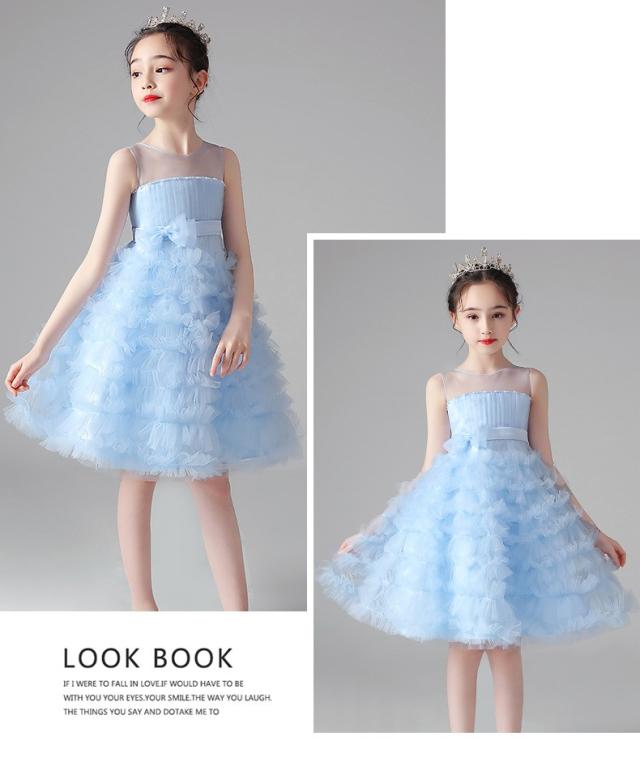 子供ドレス ピアノ発表会 キッズ ドレス ワンピース リボン付き キッズドレス 子供 ピアノ発表会 女の子 上品 フォーマルドレス ジュニア パーティードレス 七五三 結婚式 ピアノ 発表会 衣装 水色 ブルー110 120 130 140 150 160 da012l9