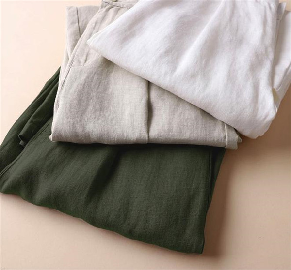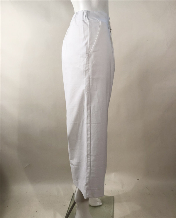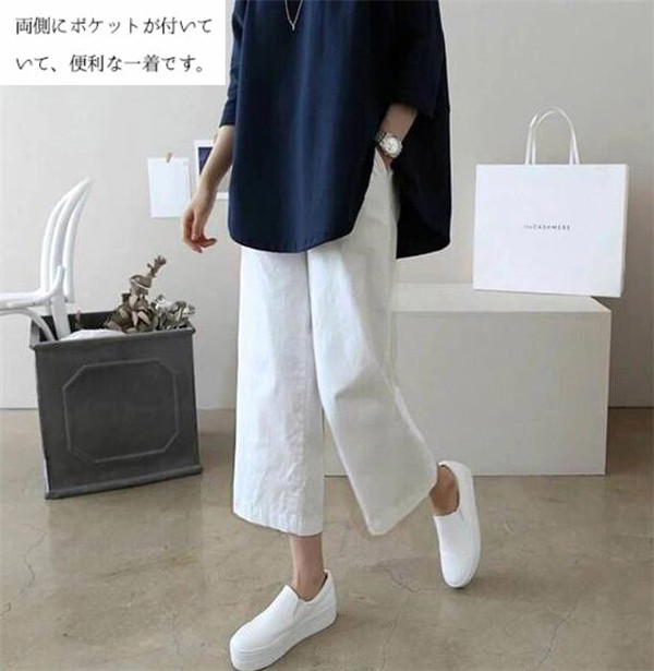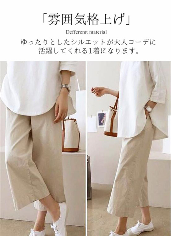 ポケット付き バックにウェストゴム付き 春秋物 無地 着痩せ レディース ロングパンツ 9分丈 ゆったり ワイドパンツ ゆるパンツ 純色