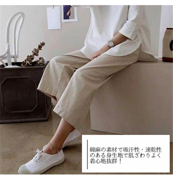ポケット付き バックにウェストゴム付き 春秋物 無地 着痩せ レディース ロングパンツ 9分丈 ゆったり ワイドパンツ ゆるパンツ 純色 きれいめ 脚長 大人 ゆったり 体型カバー da529g4g4t2