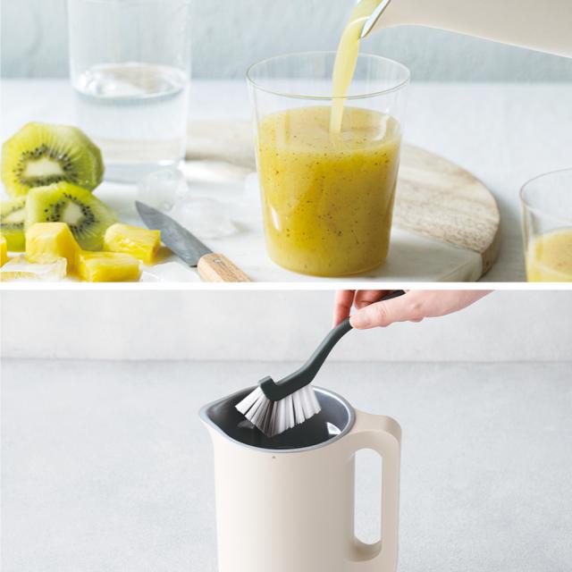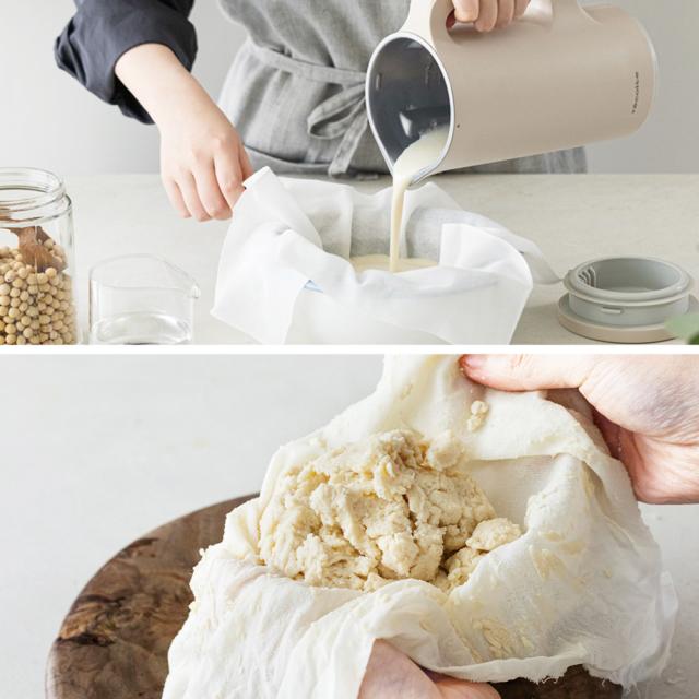 豆乳とおからを作るモード。30〜35分間、大豆を加熱しながら低速撹拌し、約90℃に達すると断続的に高速撹拌します。豆乳とおからが出来ますので、濾し器などで濾して「豆乳」と「おから」に分離する事ができます。 | JUICE&CLEAN モード