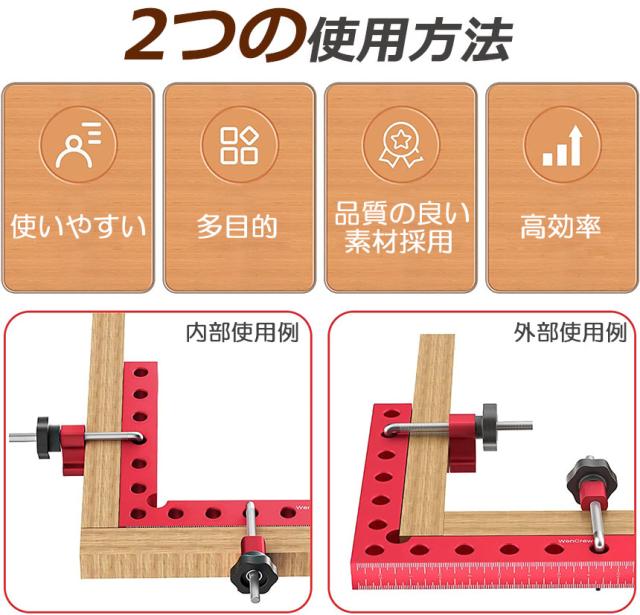 【使用用途】木材固定、接続、溶接作業に使用可能なコーナークランプです。アイデアしだいで様々な素材に使うことができます。