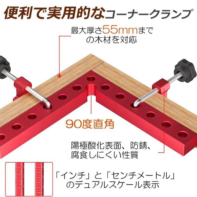【品質の良い素材】アルミニウム合金から機械加工されており、表面は陽極酸化処理されており、防錆、耐腐食性があり、色あせしにくく、非常に優れた仕上がりです。【コーナークランプ】センチとインチの2 つの測定単位があります。 レーザー刻印されており、スケール付きで長さを簡単に確認できます。