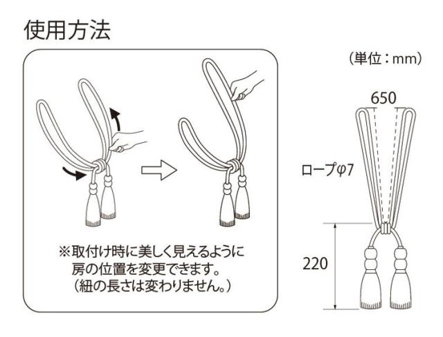 取付け時に美しく見えるように房の位置を変更できます。(紐の長さは変わりません。)