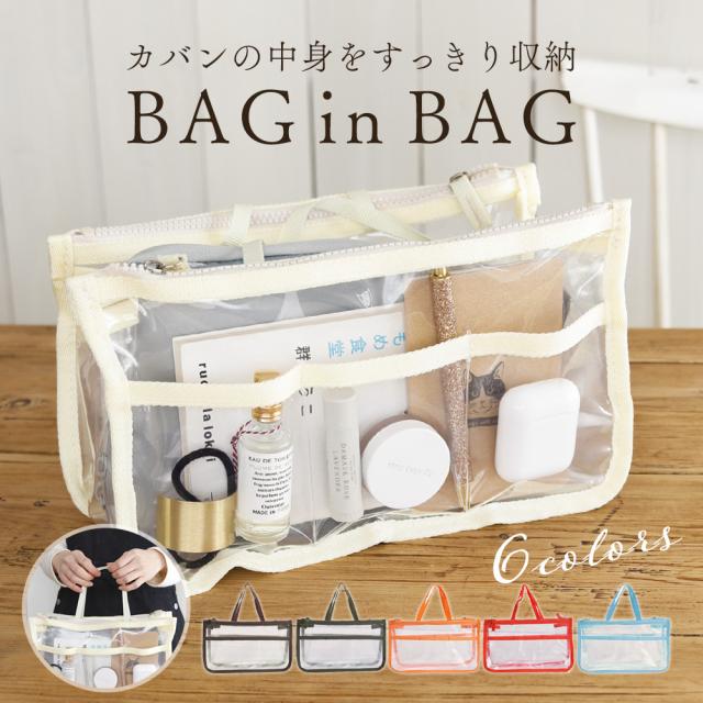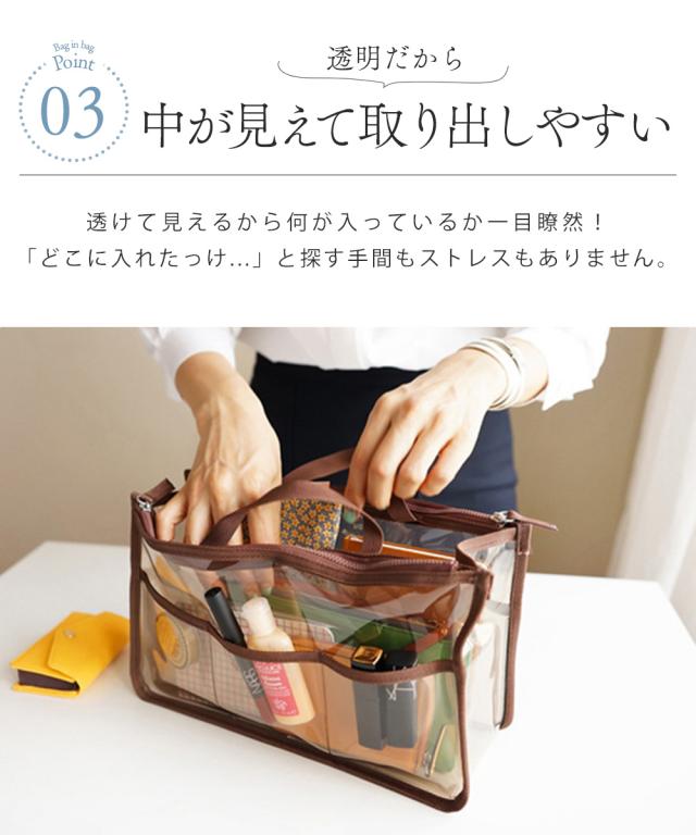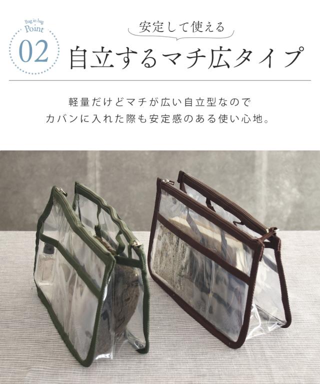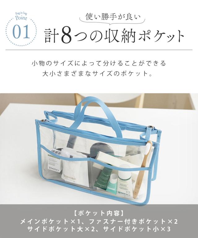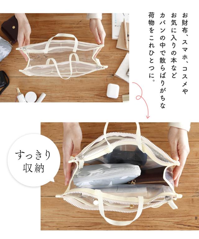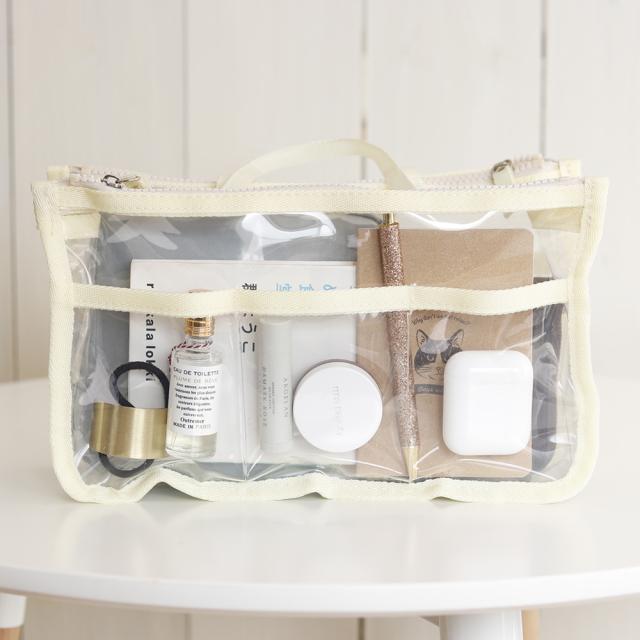 バッグインバッグ 自立 洗える インナーバッグ クリアバッグ 透明バッグ ヨコ型 収納 化粧ポーチ ビニールバッグ コスメ 化粧品 整理整頓 手持ち 防水 収納ポケット おしゃれ ビーチ サウナ サ活 旅行 通勤 通学 お出掛け シンプル 小物入れ 送料無料