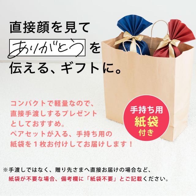 王様の足枕レディースは「レッドの不織布」、男の足枕は「ネイビーの不織布」でラッピングしてお届けいたします。