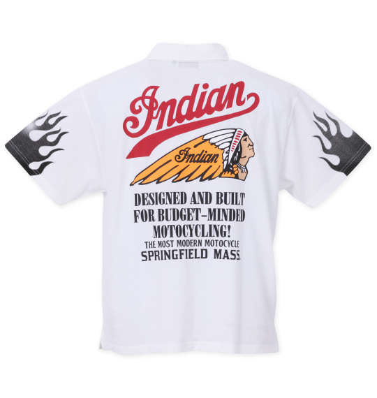 大きいサイズ メンズ INDIAN MOTOCYCLE プリント&刺繍 鹿の子 半袖 ポロシャツ オフホワイト 1278-3236-1 3L 4L 5L 6L 8L