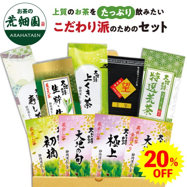 【大蔵ざらえセール対象:20%OFF】お買得9袋セット 上質なお茶をたっぷり飲みたい こだわり派のためのセット 静岡県牧之原産 深蒸し茶詰め合わせ 緑茶 お茶 ギフト 日本茶 静岡茶 国産 牧之原産 茶葉 お茶 日本茶 荒畑園