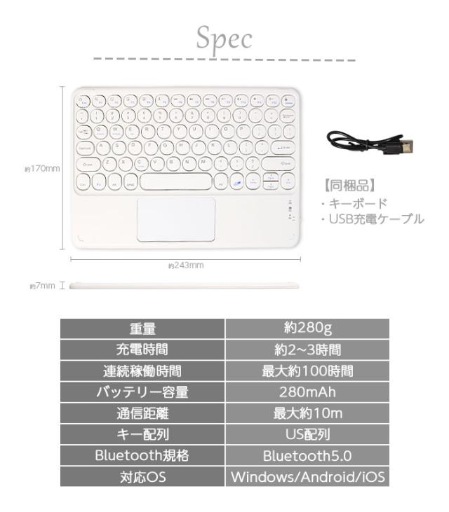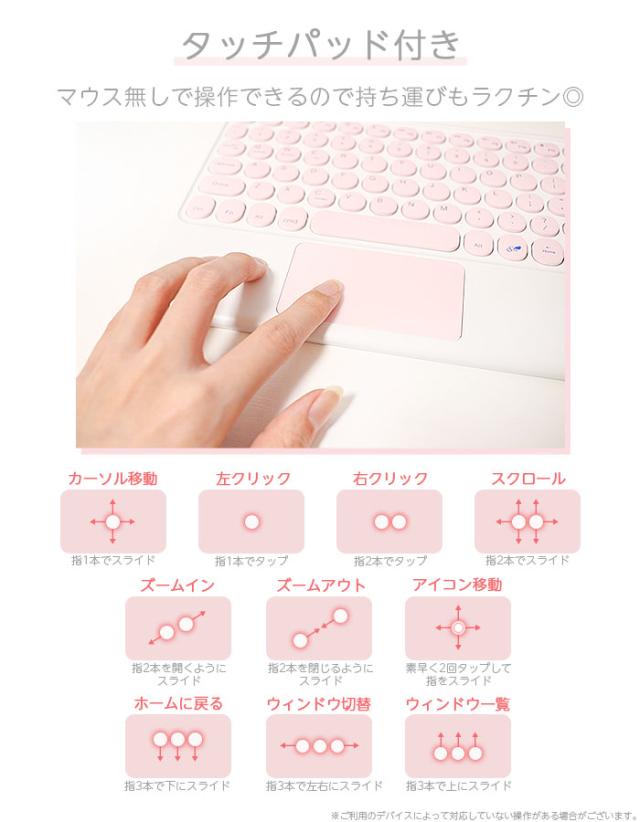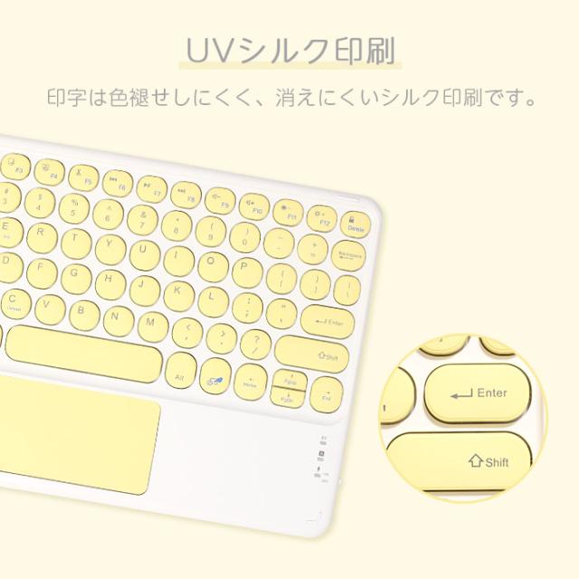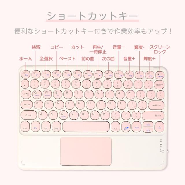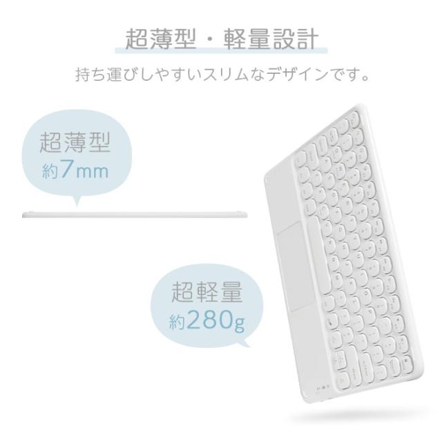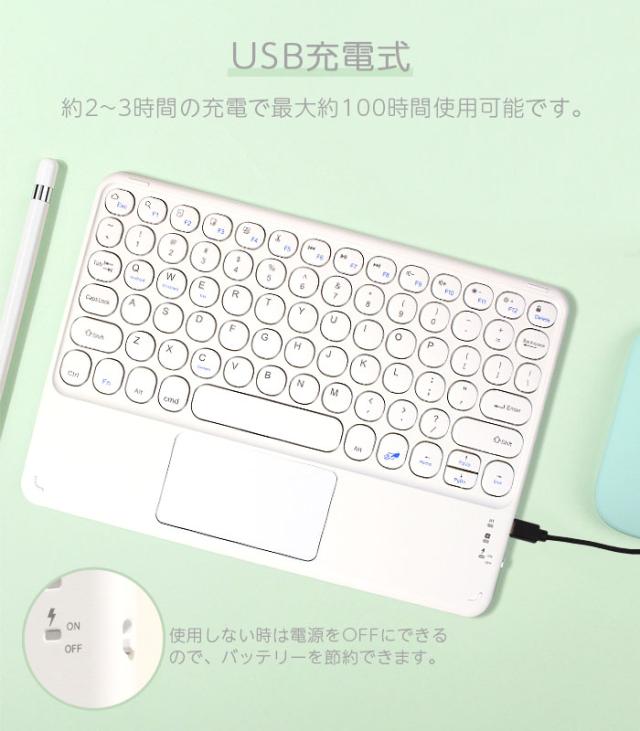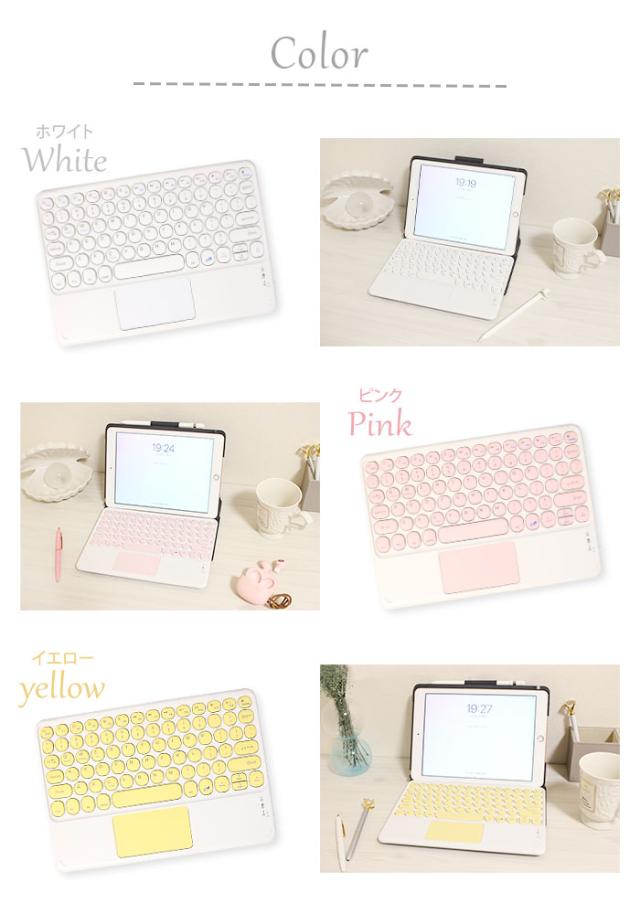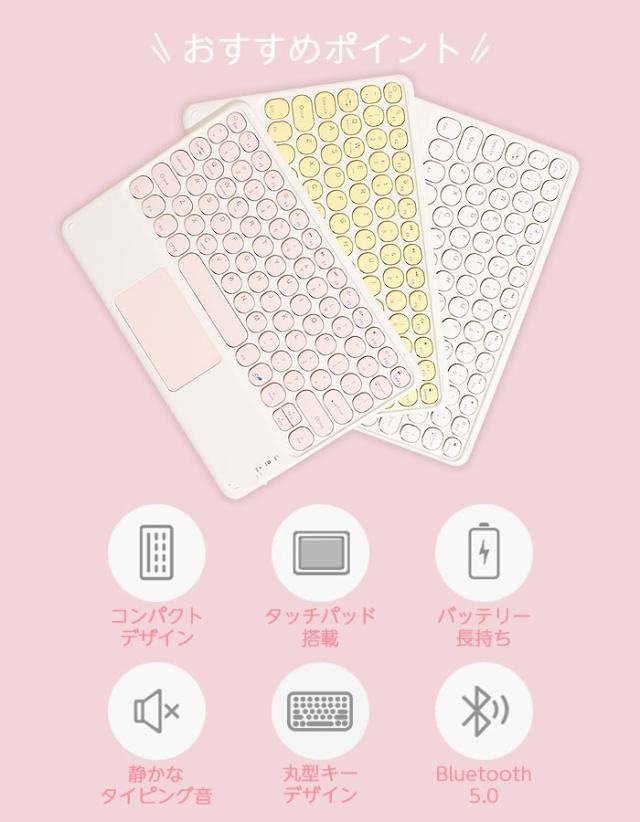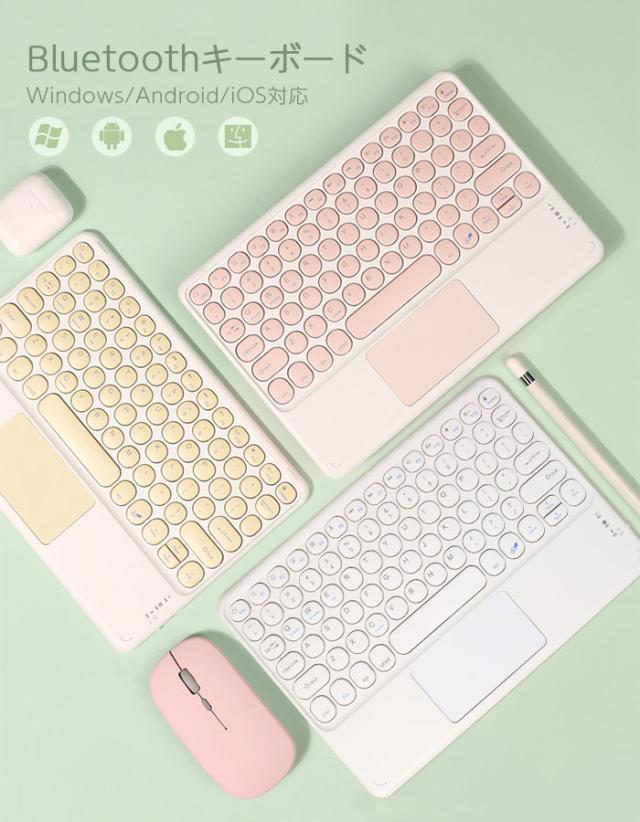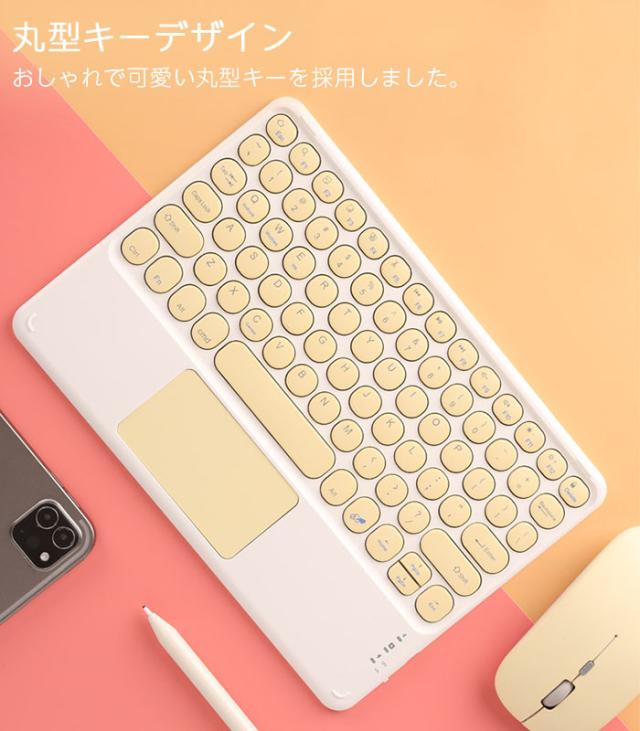 iPad キーボード かわいい Bluetooth ワイヤレス 韓国 タブレット用キーボード タッチパッド 丸型 コンパクト タブレット 薄型 iPhone Android Whindows ios iPadキーボード 充電式 コードレス ホワイト ピンク イエロー パステル カラー US配列