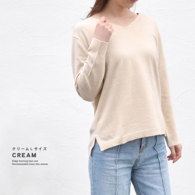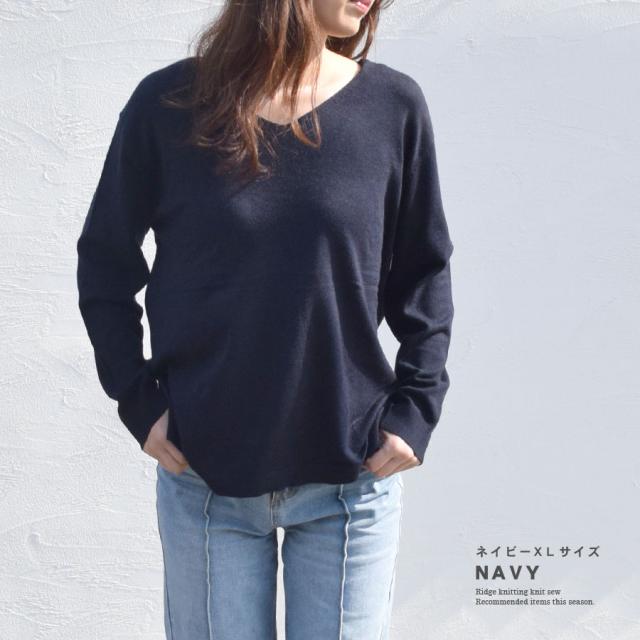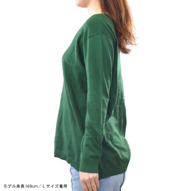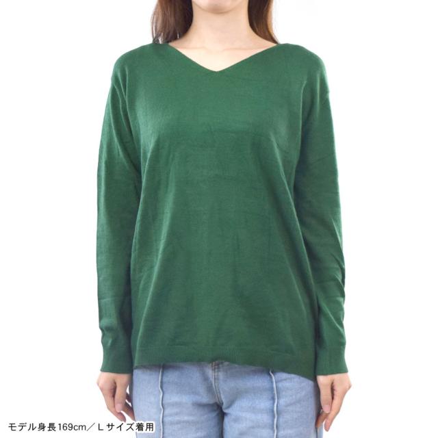 【ニット セーター レディース トップス 長袖 Vネック ニットソー ゆる ゆったり ルーズ シンプル 無地 カジュアル ふんわり やわらか きれいめ 上品 オフィスカジュアル オフィス】
