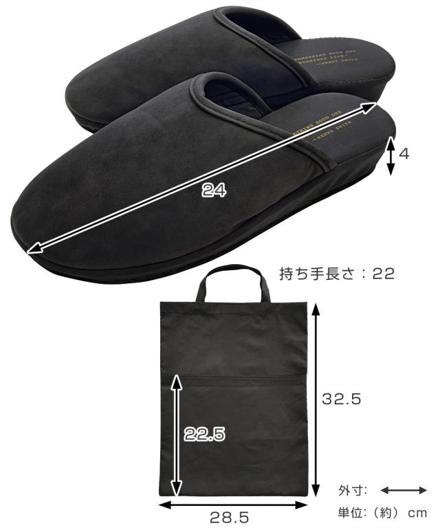 携帯スリッパ ピエーデ ヒール 袋付 ( スリッパ 持ち運び ルームシューズ ルームスリッパ 22〜24cm 室内 軽量 レディース フォーマル A4サイズ 収納袋 室内履き 自宅 おしゃれ 女性 入学式 卒業式 学校 参観 ブラック 黒 軽い )