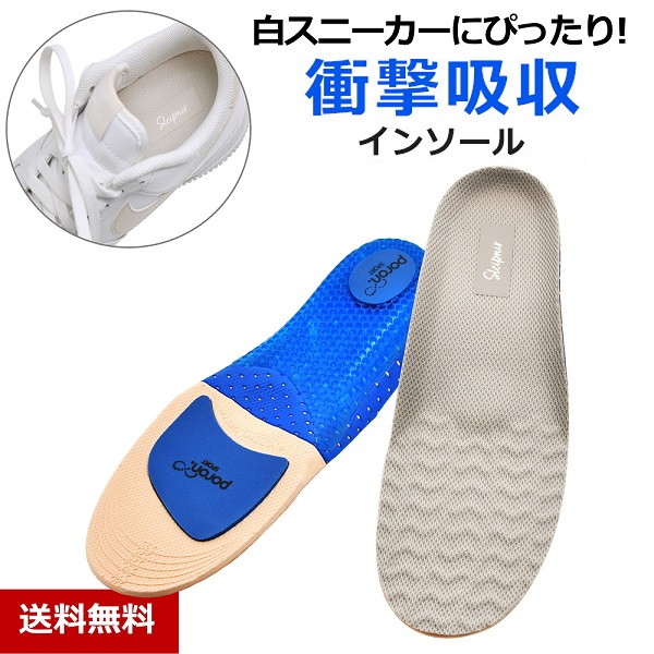 白スニーカーにぴったり! 衝撃吸収 インソール 歩行サポート 中敷き 土踏まず アーチ サポーター 疲れ 疲労 軽減 立ち仕事 スニーカー 革靴