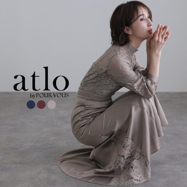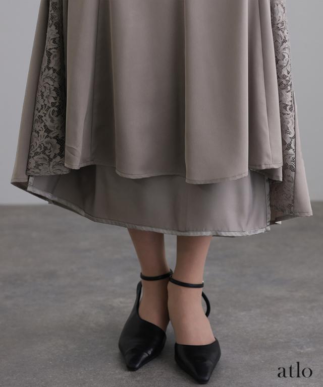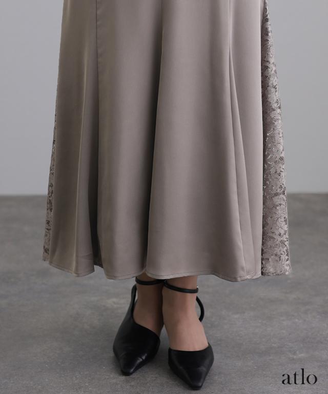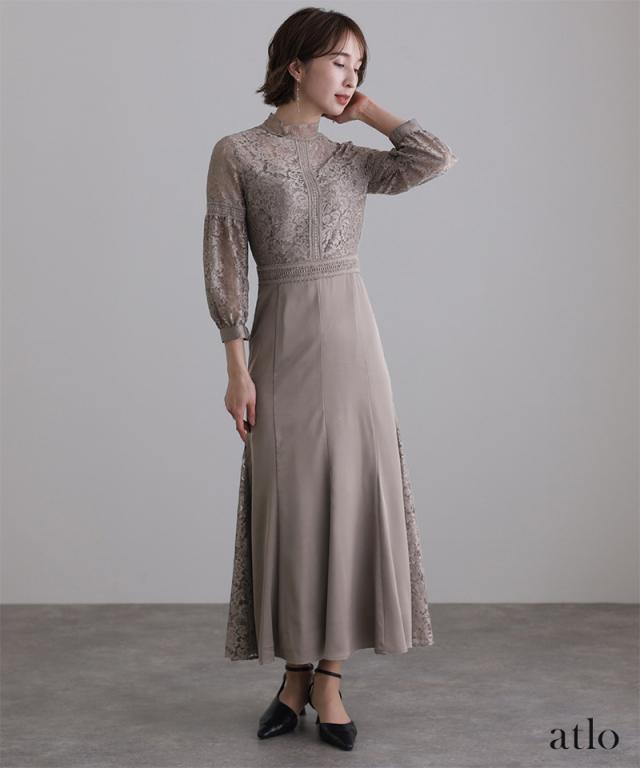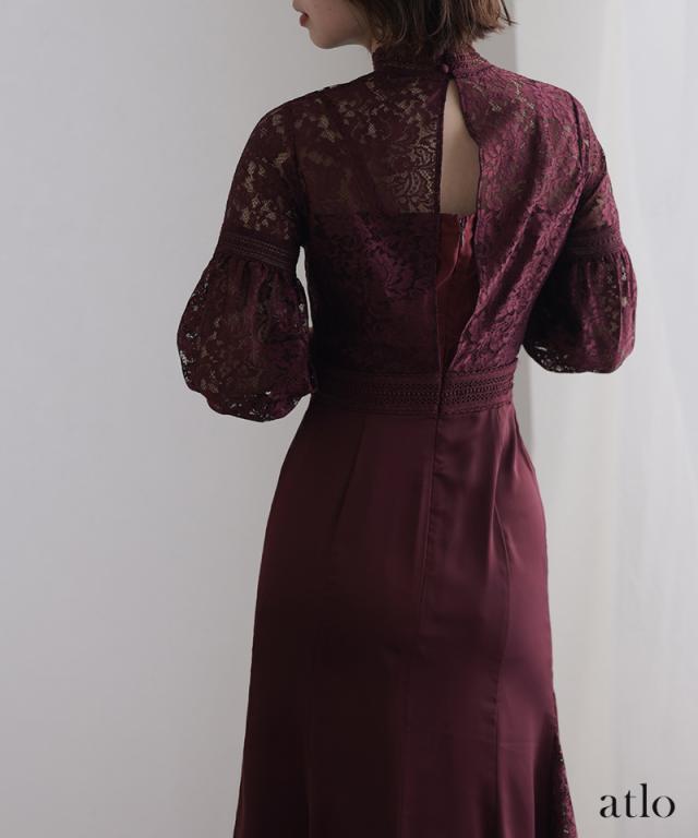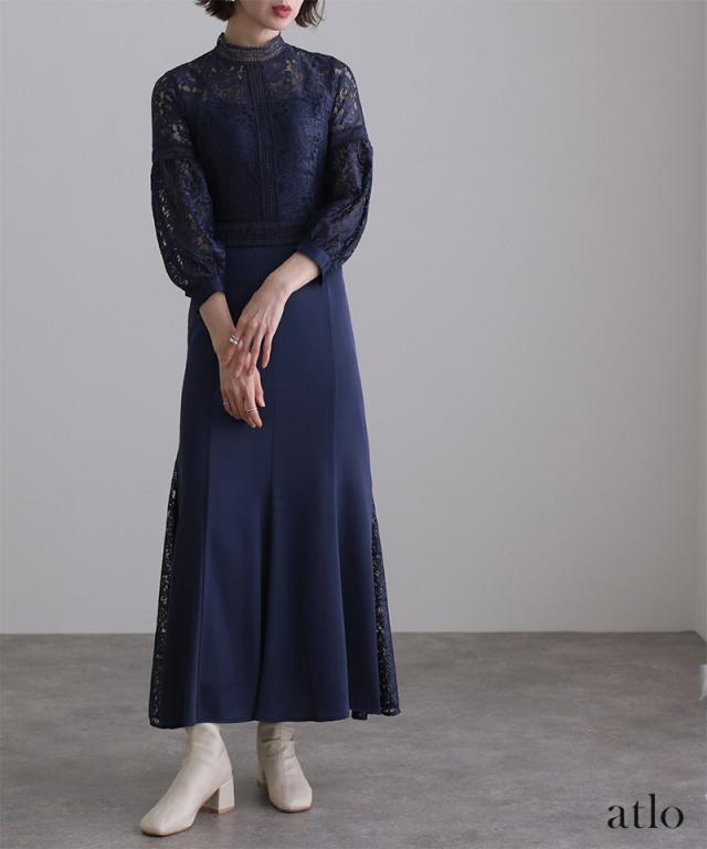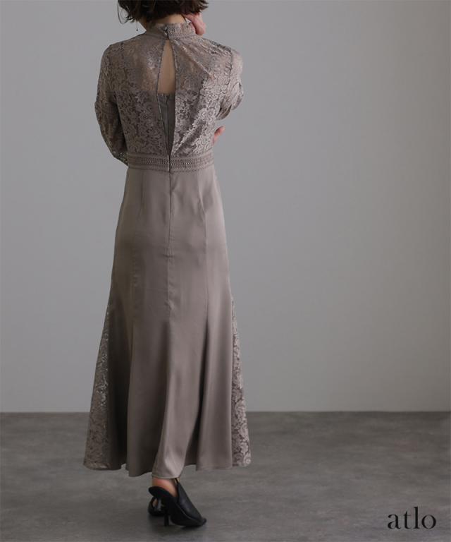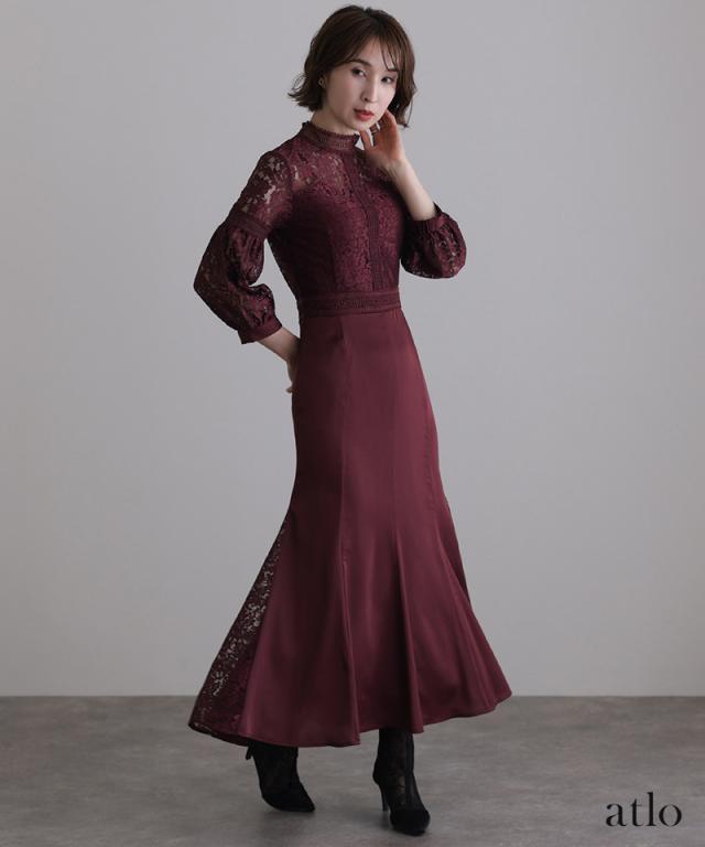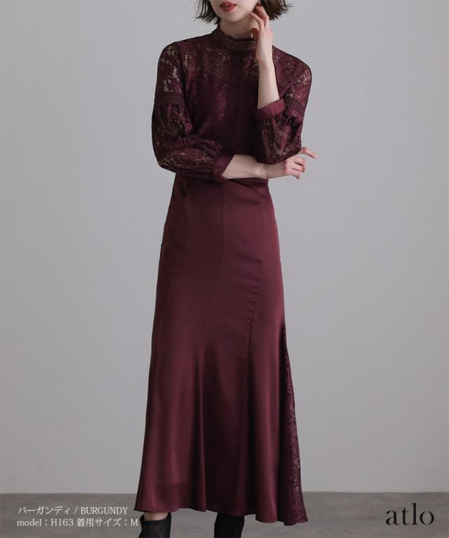 レース×サテン切替ワンピース/314222014