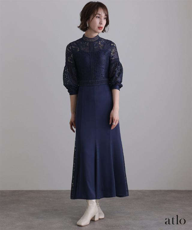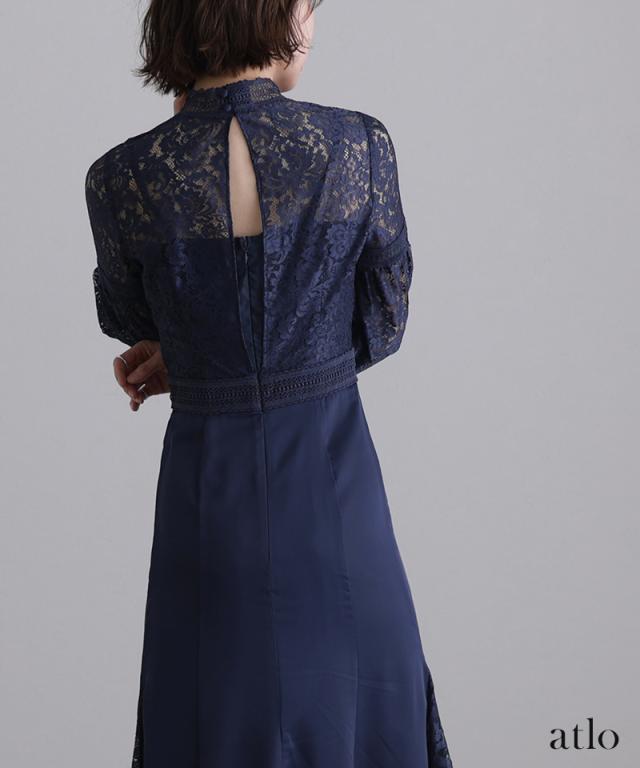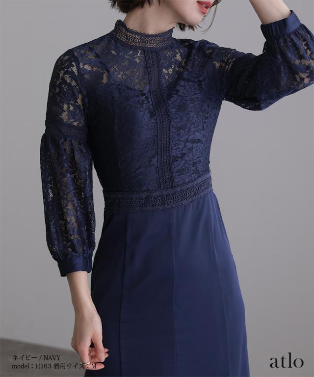 レース×サテン切替ワンピース【314222014】20代・30代・40代・54代長袖・膝丈・セットアップ・スカート・体型カバー・ジャケット・テーラード・スーツ・大きいサイズなど・即日発送・送料無料結婚式・婚活・披露宴・顔合わせ・二次会・同窓会・お呼ばれ・食事会・謝恩会・親族・七五三・お宮参り・冠婚葬祭・弔事・女子会・デート・入学式・卒業式・入園式・卒園式・ママ・マタニティー・セレモニー・セレブ・パーティー
