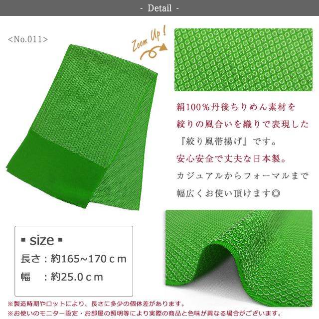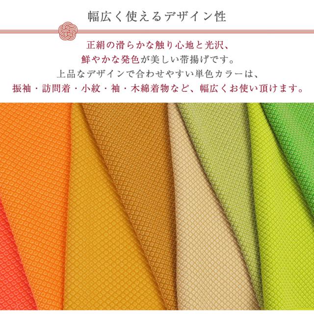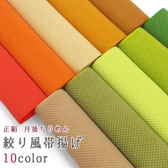 【1枚までメール便発送OK】絞り風 帯揚げ 正絹 丹後ちりめん 高級 ふくれ織り 無地 日本製 幅25cm 並尺 約170cm 10色 黄 緑 オレンジ ビビッド くすみ 定番 人気 カラー 和装 着付け 小物 レディース 女性 フォーマル カジュアル お洒落 着物 振袖 訪問着 付け下げ 袷