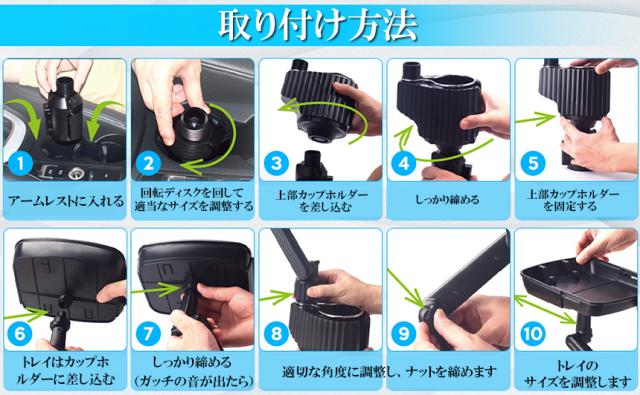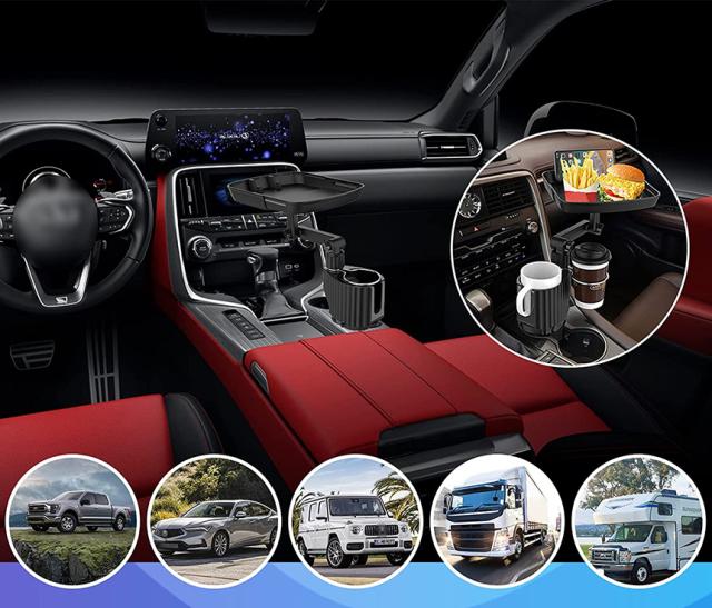 ●車内での携帯電話の置き場所に困った経験はございませんか?簡単にテーブルが設置できるドリンク穴取り付け式の車内用ミニテーブルです。 ドリンク穴1個でテーブルプラスドリンク置き場2個増設できます。