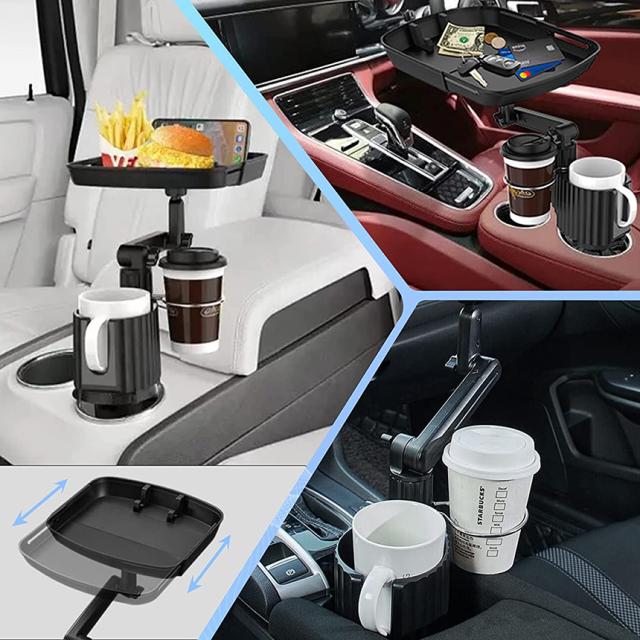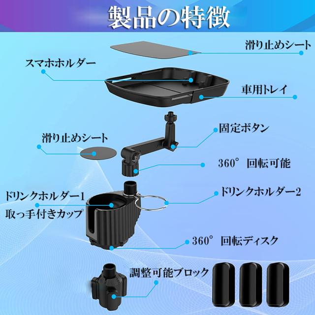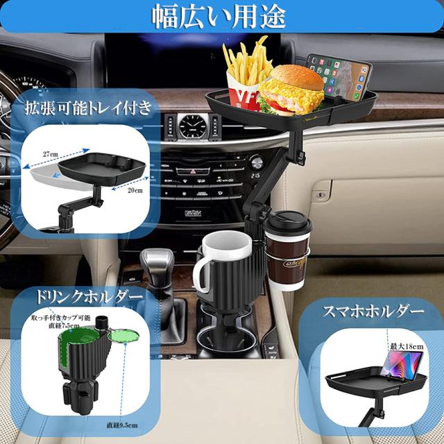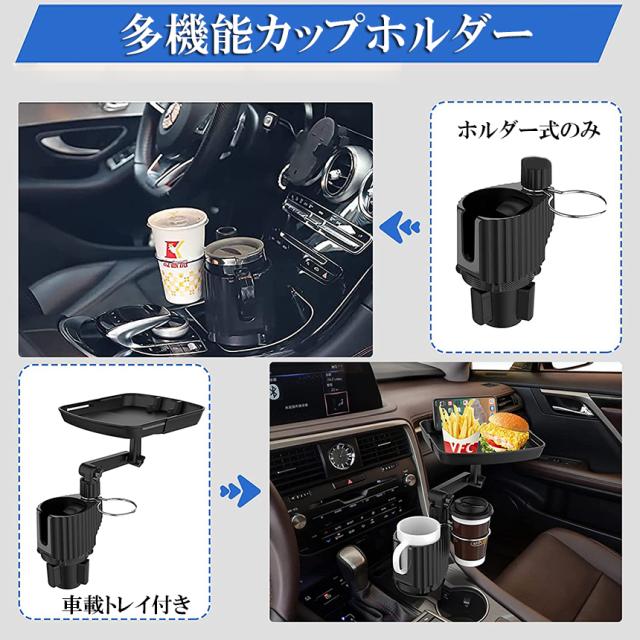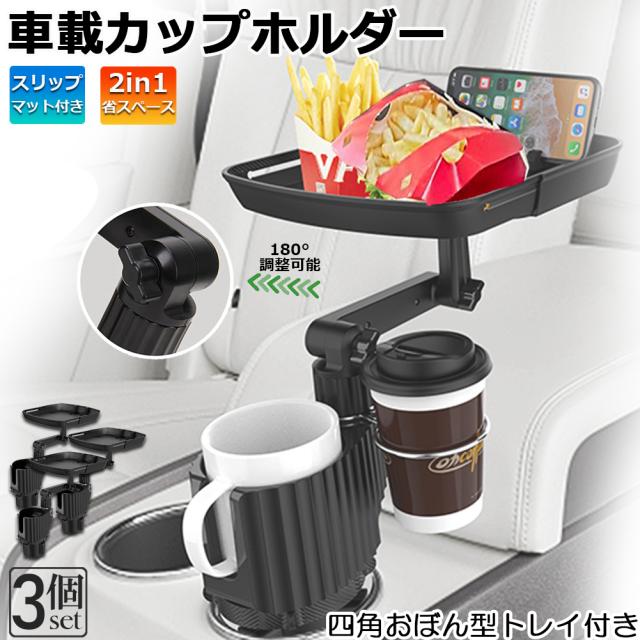 ドリンクホルダー トレイ車用 車載トレイ 3個セット 車用トレイ スマホスタンド カーテーブル 2in1 差し込み式 多機能 360°回転 スマホ 小物入れ 車載 滑り止めシート 収納 車内 車用 回転 ダブルカップホルダー 内装用品 カー用品 車用品 ア