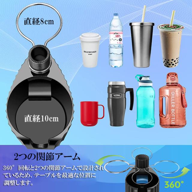 ●車内での携帯電話の置き場所に困った経験はございませんか?簡単にテーブルが設置できるドリンク穴取り付け式の車内用ミニテーブルです。 ドリンク穴1個でテーブルプラスドリンク置き場2個増設できます。●ドリンクホルダー部分に本体を差し込み、矢印方向に回すだけで簡単に設置完了!固定部分は滑り止め加工が施されており、がっちりと固定できます。未使用時は取り外しアーム部分を取り外すことでコンパクトに収納いただけます。