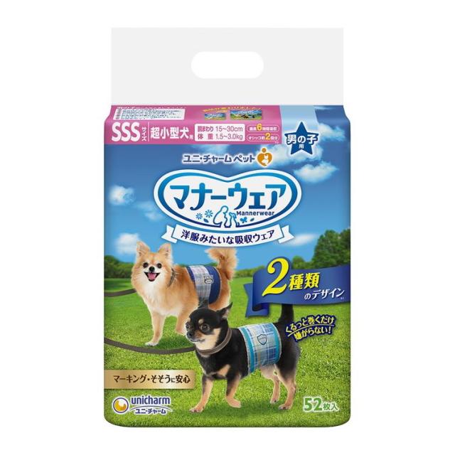 ユニチャーム マナーウェア 男の子用 SSSサイズ 52枚x1 超小型犬用 犬用おむつ マナーおむつ ペット用【送料無料】