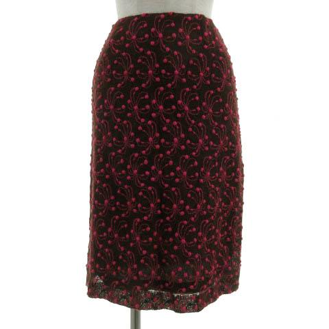 【中古】トッカ TOCCA スカート ニット ストレート ミディ丈 刺繍 総柄 USA製 ブラウン 茶 ピンク 2 レディース