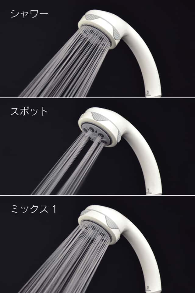 - シャワー・ジェット・スポット・シャワー+ジェット・シャワー+スポットの5種類の水流に切替ができます。