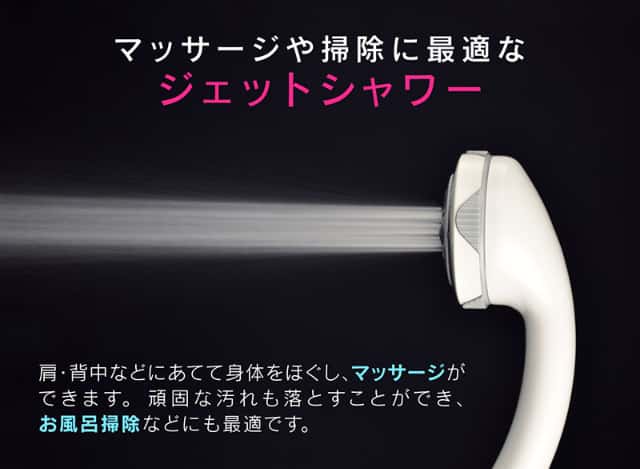 - ジェットシャワーで体をほぐしてマッサージができます。また、お風呂掃除にも最適です。
