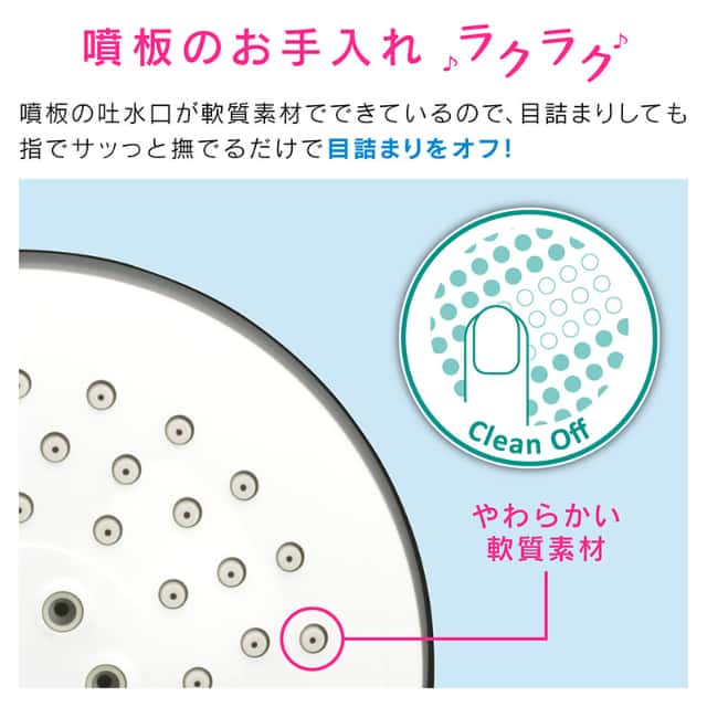 ・軟質噴板採用で目詰まりなどのお手入れ楽々。噴板の突起を指でなぞるだけ。