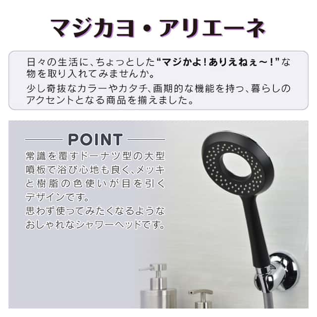 サークルシャワーホースセット シャワーヘッドとホースのセット 大型噴板 バイカラー 大流量 しっかりした浴び心地 NIKLES マットブラック GA-FH015 日本製