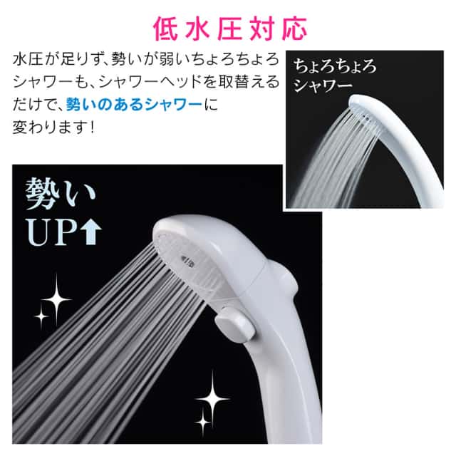 - 水圧の低いご家庭でも快適な勢いでご使用できます。