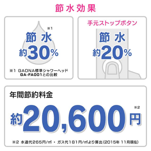 ・従来型シャワーヘッドと比べて約30%の節水効果(当社比)、毎日の生活で節水を意識せずに節約できます。