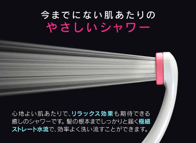 - 直径0.3mmの金属噴板の穴から飛び出す微細シャワーは、今までにないやさしい浴び心地を実現しています。