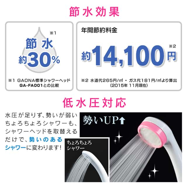 ・従来型シャワーヘッドと比べて約30%の節水効果(当社比)、毎日の生活で節水を意識せずに節約できます。