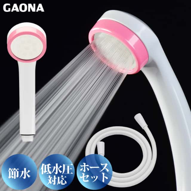 シルキーシャワーホースセット ピンク シャワーヘッドとホースのセット 節水 極細 シャワー穴0.3mm 低水圧対応 ピンク GA-FH019 日本製
