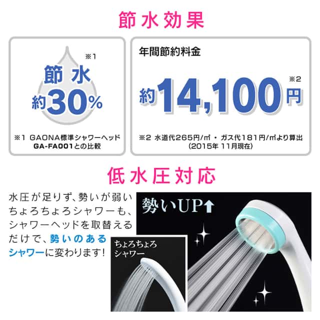 ・従来型シャワーヘッドと比べて約30%の節水効果(当社比)、毎日の生活で節水を意識せずに節約できます。