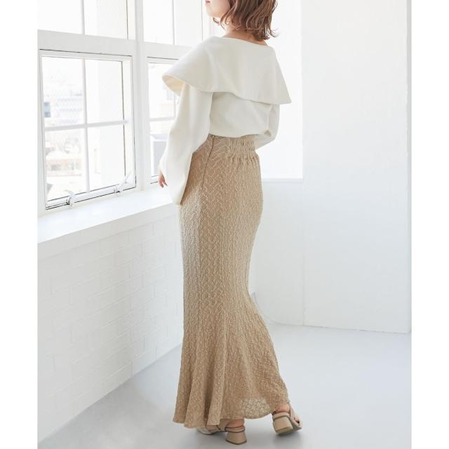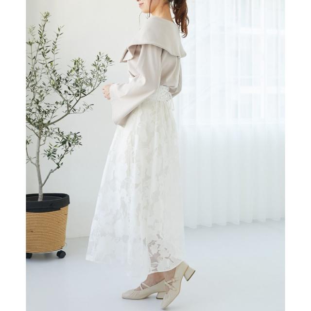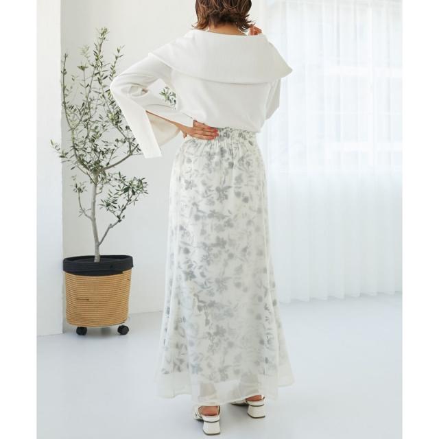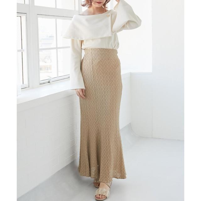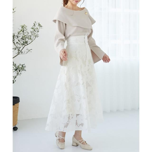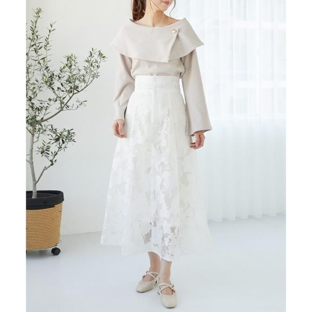 上品なデコルテ見せが女性らしさを引き立てるオフショルトップス。