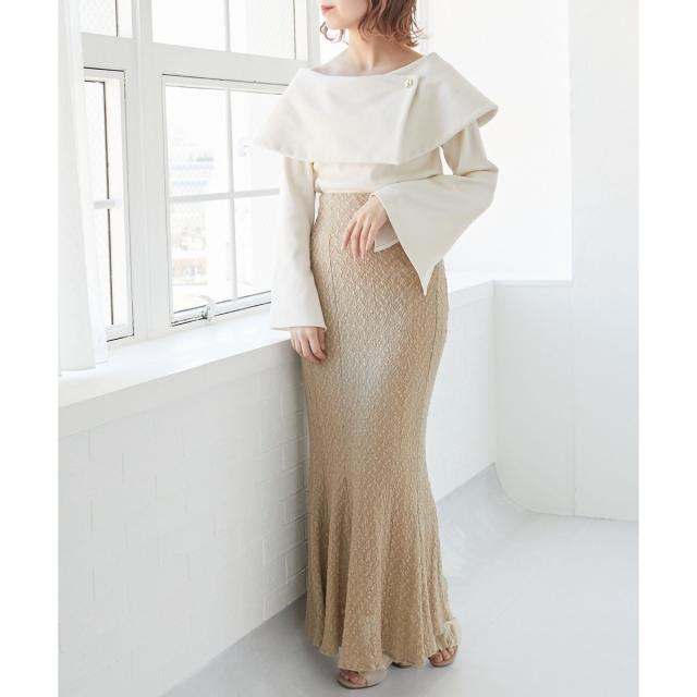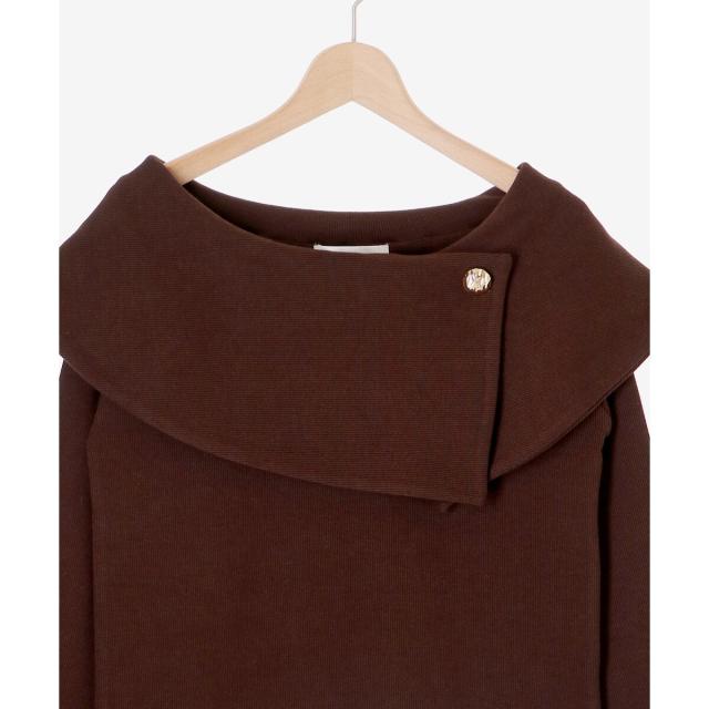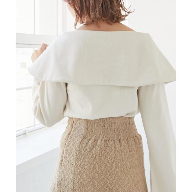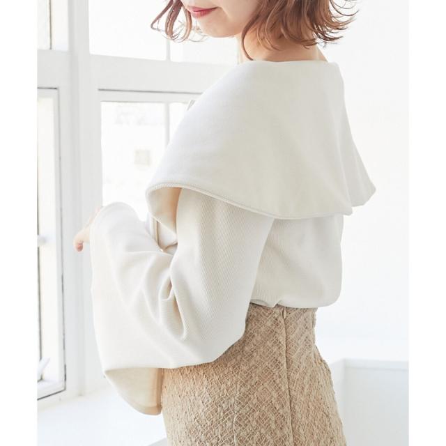 アイコニックな衿デザインが目を惹くデザインオフショルトップス。