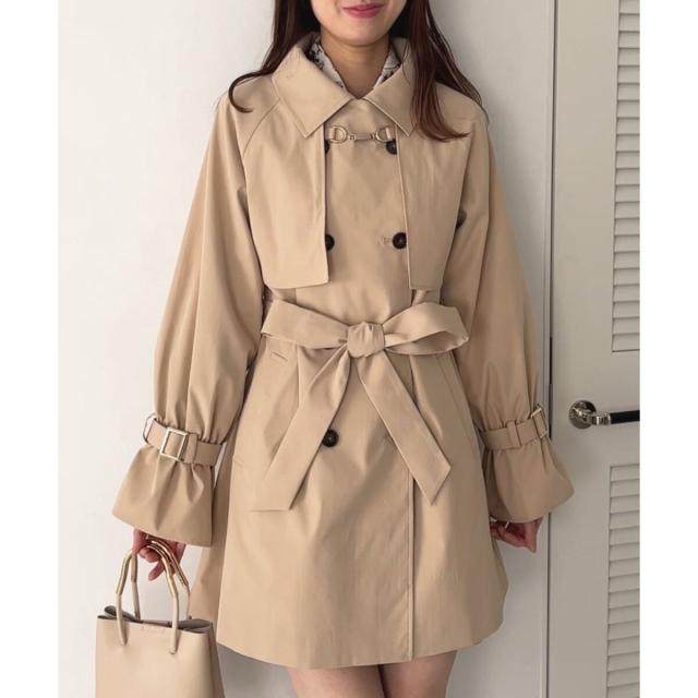 フロントのビットデザインが目を惹く万能トレンチコート。