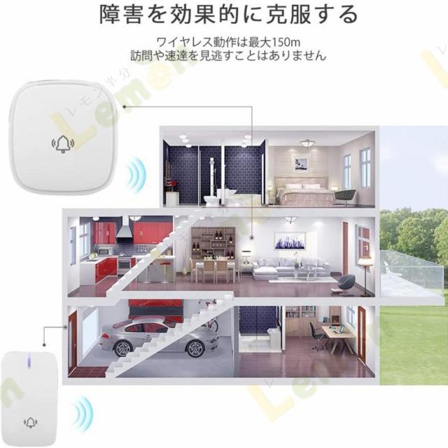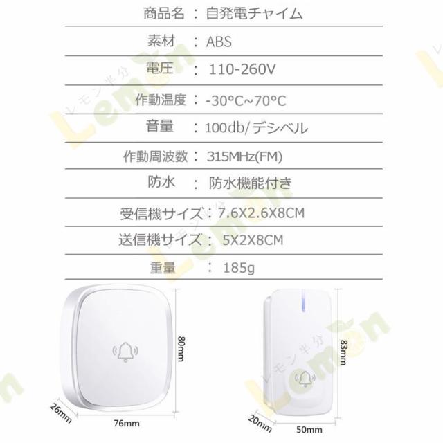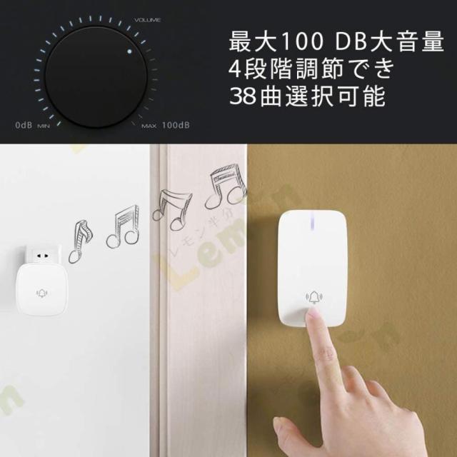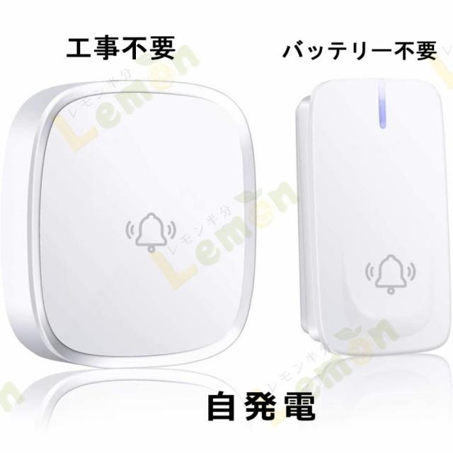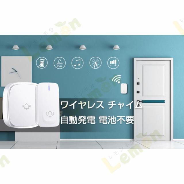 ワイヤレスチャイム 玄関チャイム 自動発電 電池不要 呼び鈴 介護 大音量 0dB?100dB調整可能 飲食店 玄関 浴室 防水 防塵 自発電 工事不要 チャイム PSE認証済