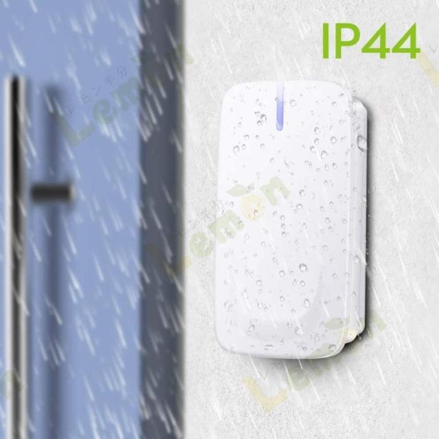 IP44防水:こちらの呼び出しチャイムの押しボタン送信機は防滴仕様