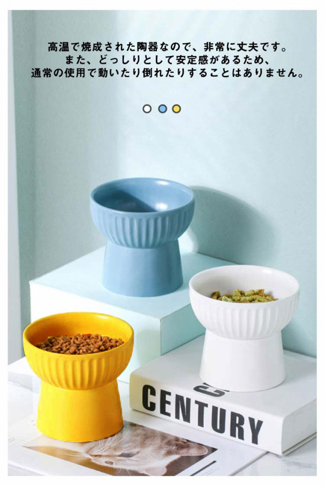 | 猫工学に基づいて、脊柱を保護する合理的な高さで、食事中に首や腰への負担を軽減し、子猫やシニア猫に最適です。 高温で焼成された陶器なので、非常に丈夫です。また、どっしりとして安定感があるため、通常の使用で動いたり倒れたりすることはありません。 陶磁器の美しさを生かしたシンプルで可愛らしいデザイン。フードの邪魔をしないさりげないデザインにこだわりました。 陶器製なので雑菌の繁殖を防ぎ安全にご使用頂けます。傷なども入りにくく長持ちします。金属アレルギーの心配もなく皮膚疾患の愛猫にも安心です。 | |