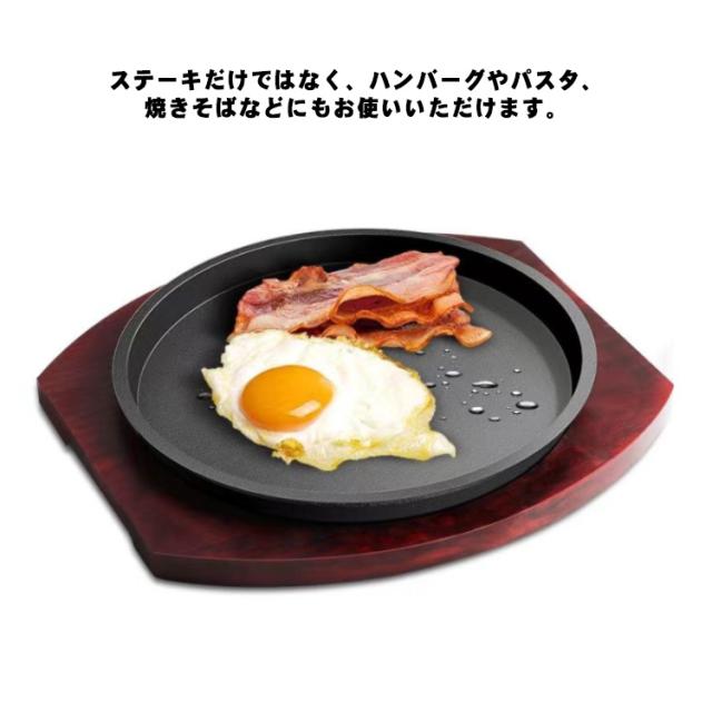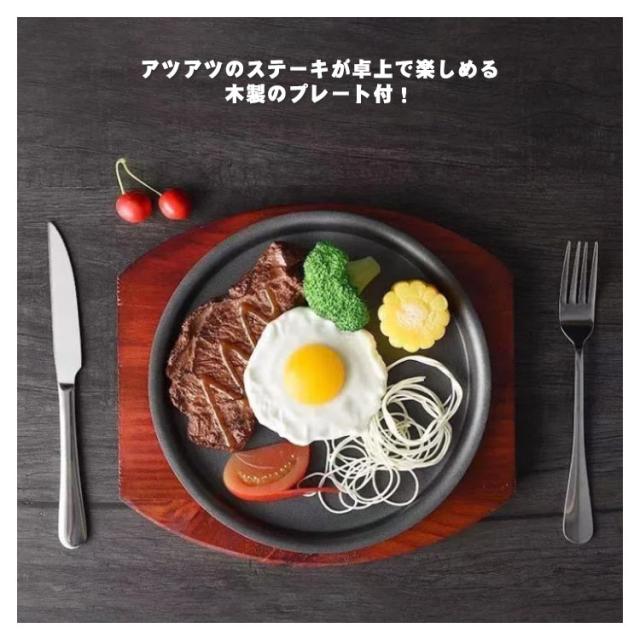 ステーキ皿 丸型 円形 鉄板 ステーキ皿 19cm/21cm/23cm/25cm/27cm/29cm ステーキ 調理器具 家庭用 業務用 ステーキ 鉄板 調理 ステーキ鉄板 キッチン 食器 ステーキ用品 電磁調理器対応 IH対応 ガス火 焼肉 木製プレート 敷板 ハンバーグ