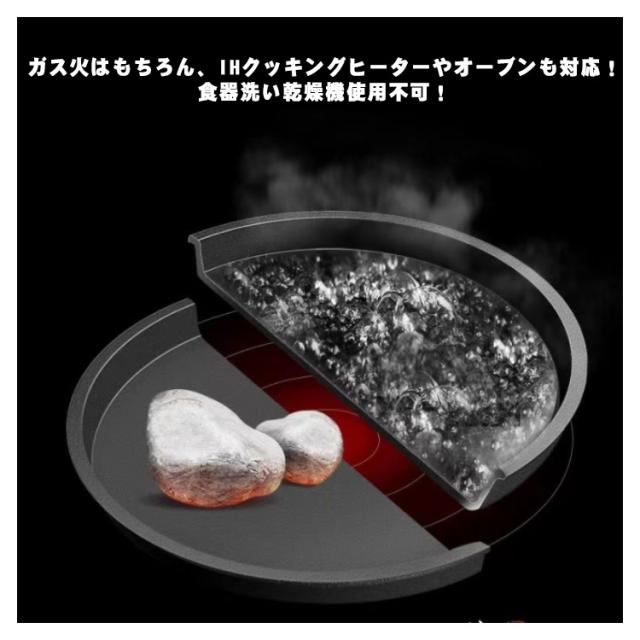 | 自宅でレストラン気分が味わえる鉄鋳物製ステーキ皿。 アツアツのステーキが卓上で楽しめる木製のプレート付! ステーキだけではなく、ハンバーグやパスタ、焼きそばなどにもお使いいただけます。 ガス火はもちろん、IHクッキングヒーターやオーブンも対応!食器洗い乾燥機使用不可! | |