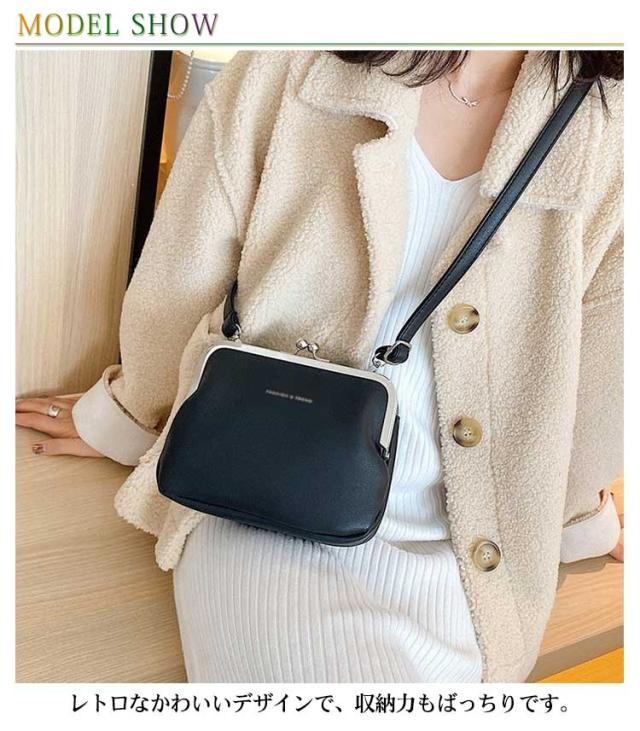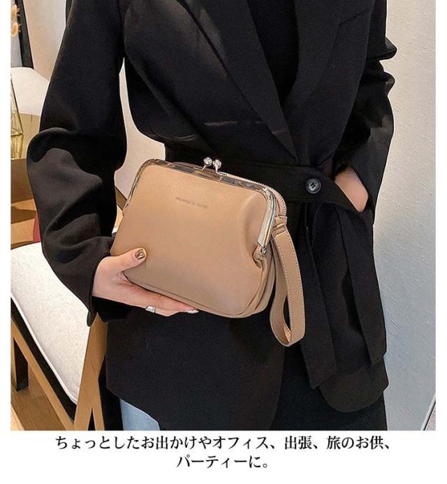 4色展開 がま口バッグ ミニ ショルダーバッグ 鞄 レディース ハンドバッグ エコレザー 収納 レトロ シンプル トレンド オシャレ 韓国ファッション