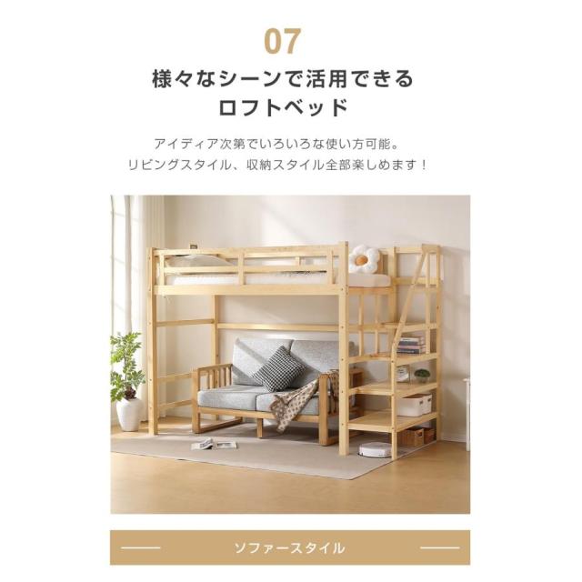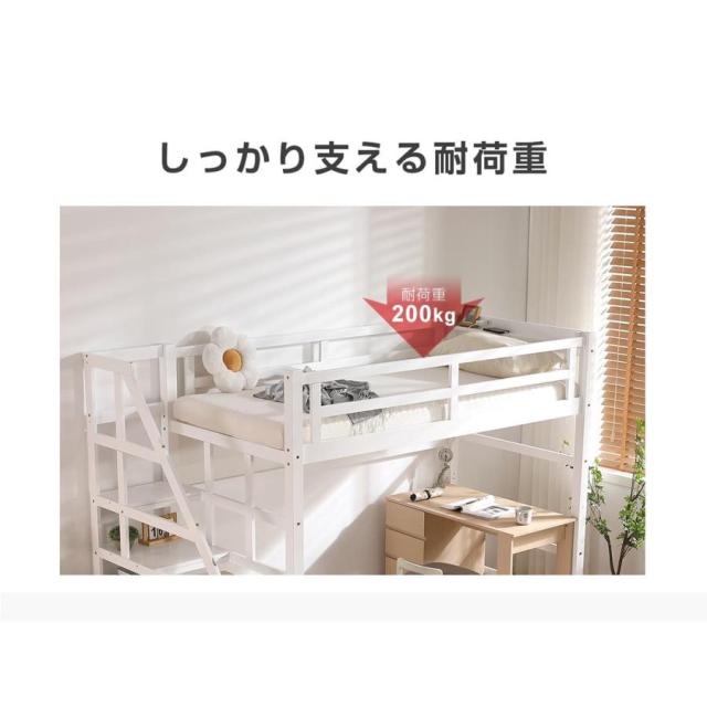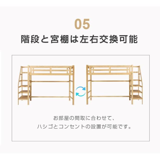 「クーポン配布中」木製 ロフトベッド 天然木 ロフトベッド 階段付き コンセント付き 宮付き 収納棚付き 高さ172cm 二段ベッド シングルベッド 耐震ベッド 大人 子供ベッド 北欧風 一人暮らし 新生活応援