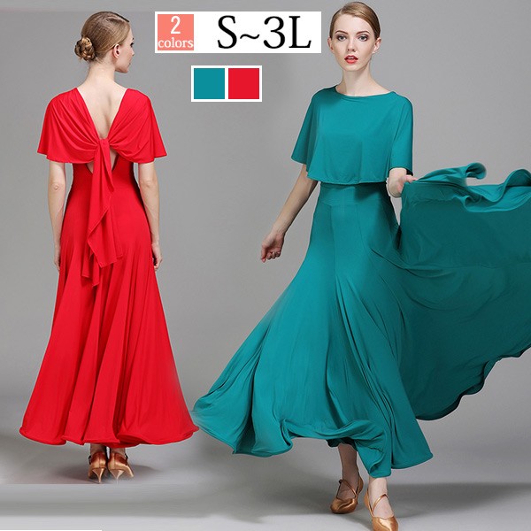 【レビュー投稿で+5%還元】社交ダンス ドレス ワンピース モダンドレス ダンスワンピース ダンス衣装 無地 ダンスウェア 社交ダンス衣装 モダンドレス ロングワンピース 発表会 レッド 緑 S M L 2L 3L dm050l9