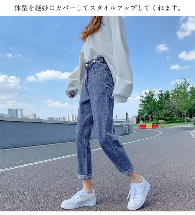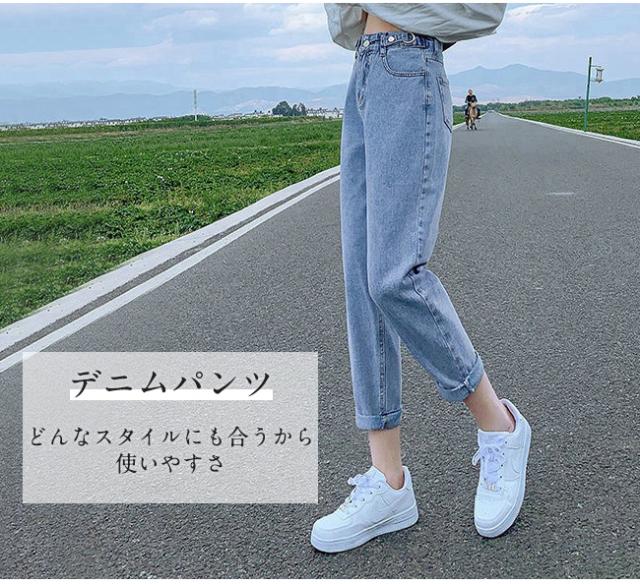 春新作 デニムパンツ レディース ジーンズ ズボン ボトムス ハイウエスト 9分丈 調節可 カシュアル 体型カバー ゆったり 美脚 ポイント消化