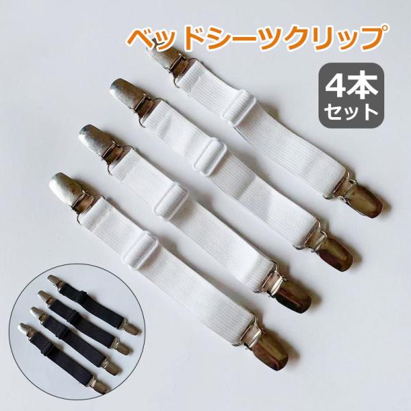 ベッドシーツクリップ シーツ固定 布団クリップ ズレ防止クリップ ゴムバンド 調節可能 4本セット ネコポス送料無料 ポイント消化