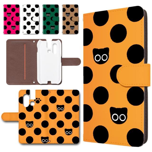 mamorino6 ケース 手帳型 カメラ穴搭載 黒猫 ドット柄 クロネコ シンプル かわいい くろねこ mamorino6 カバー shf35 au キッズケータイ スマホケース マモリーノ6 ケース 手帳ケース 手帳 まもりーの6 けーす 子供用
